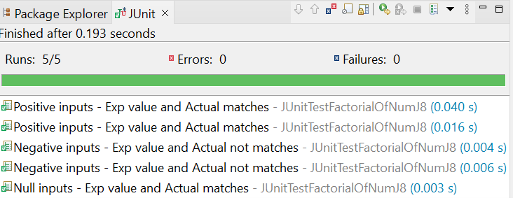 This is the JUnit 5 solution to cover all kinds of inputs provided to find the factorial of a given number. This Unit test executes tests for the ‘RdInput’ function available in the class ‘FactorialOfNumJ8’.